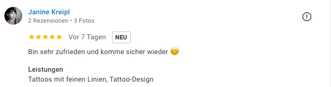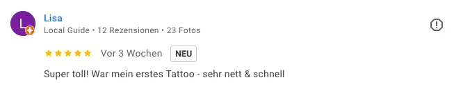 „Super toll! War mein erstes Tattoo – sehr nett & schnell.“