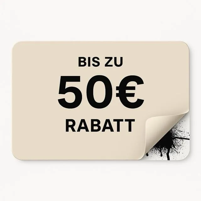 Der Rabatt richtet sich nach der Größe deines Tattoos. Je größer das Motiv, desto höher dein Rabatt – bis zu 50 € kannst du dir so direkt bei deinem Termin sparen.
